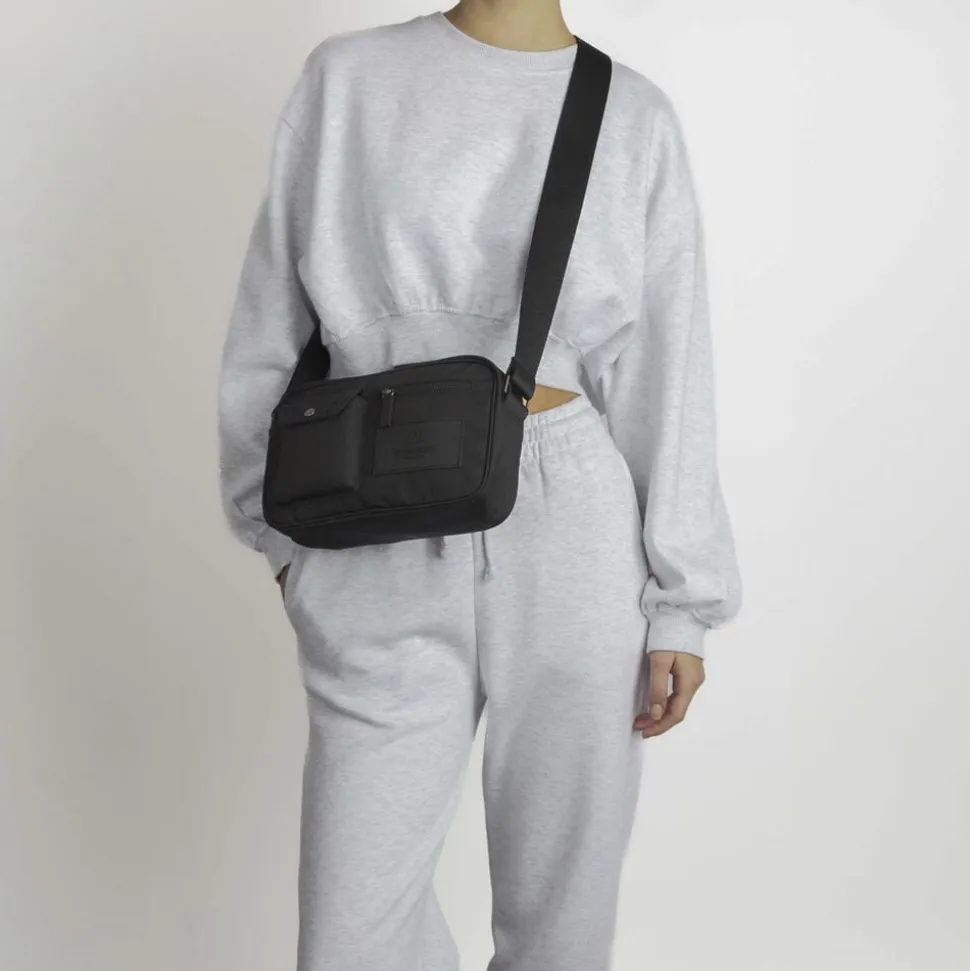 Darla Crossbody Monochrome fra Markberg er en praktisk crossbody taske som er produceret i 100% genanvendt polyester. Tasken er vandafvisende og lavet i et ekstra slidstærkt materiale. Tasken lukkes med lynlås og har en lille lomme og lynlåsdetaljer på fronten. Tasken har en lille lynlåslomme samt to små lommer indvendig. Markberg logoet på fronten er lavet i vegansk silikone, hvor der ikke er brugt animalske materialer. Tasken for er 100% genanvendt polyester. Mål: 26 cm x 16 cm x 7 cm