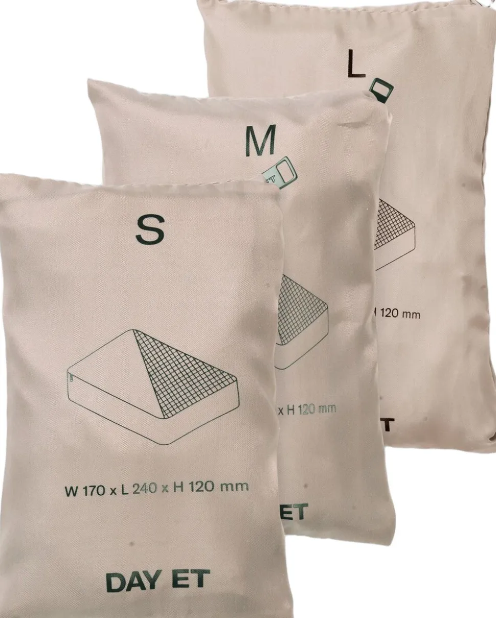 Dette sæt af packing cubes indeholder packing cubes i størrelserne S, M og L, som kan bruges til at organisere dine sager, når du pakker din kuffert. Hovedmaterialet er lavet af certificeret genanvendt materiale. De lukkes med en lynlås, og øverst på hver packing cube er der et netmateriale, så du nemt kan se, hvad du har pakket.