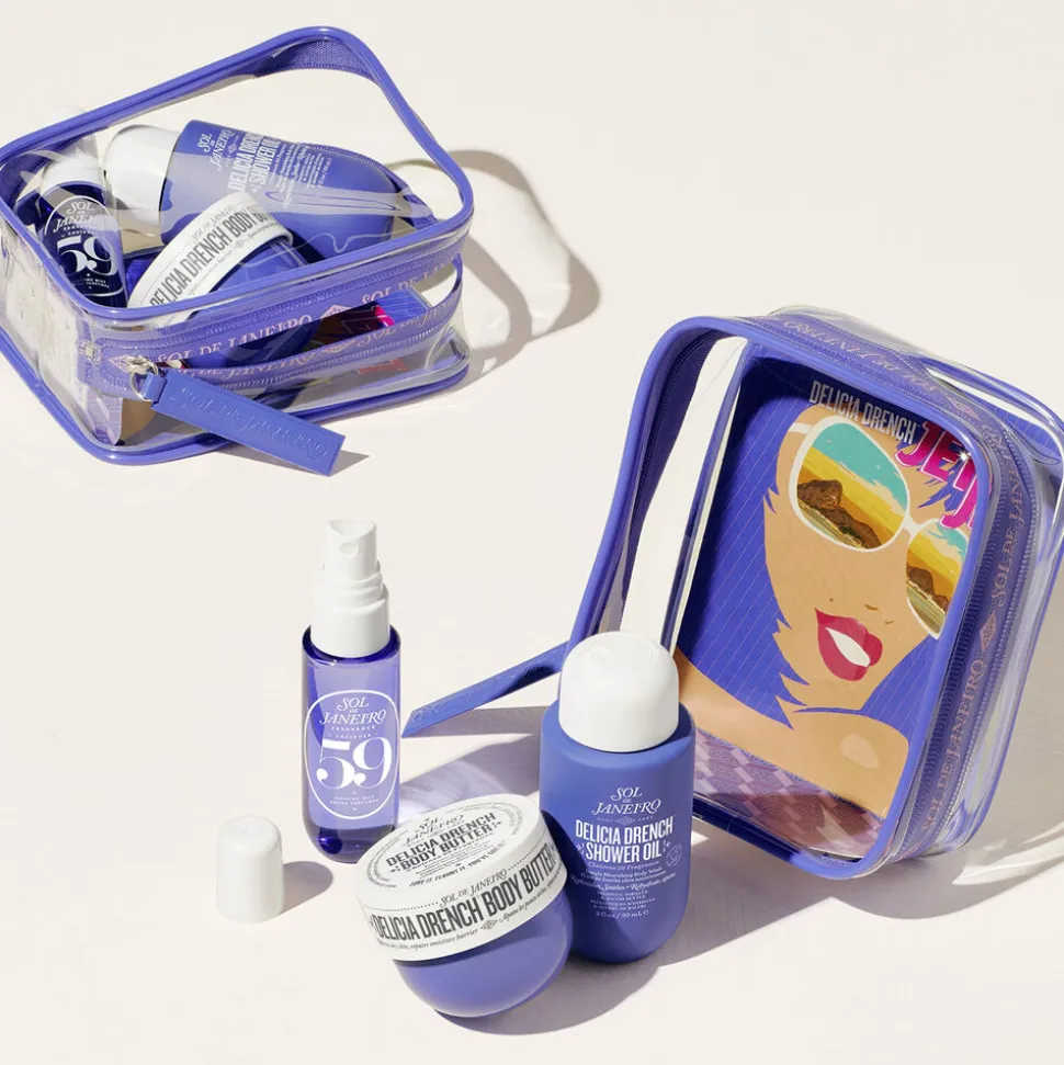 Delicia Drench Jet Set: et kropsplejesæt, der kan tages med overalt, og som indeholder en kropsrutine til en glattere og fugtet hud med duften Cheirosa 59. Nøgleingredienser: Beroligende brasiliansk kompleks med præbiotika og hibiscus.