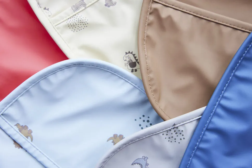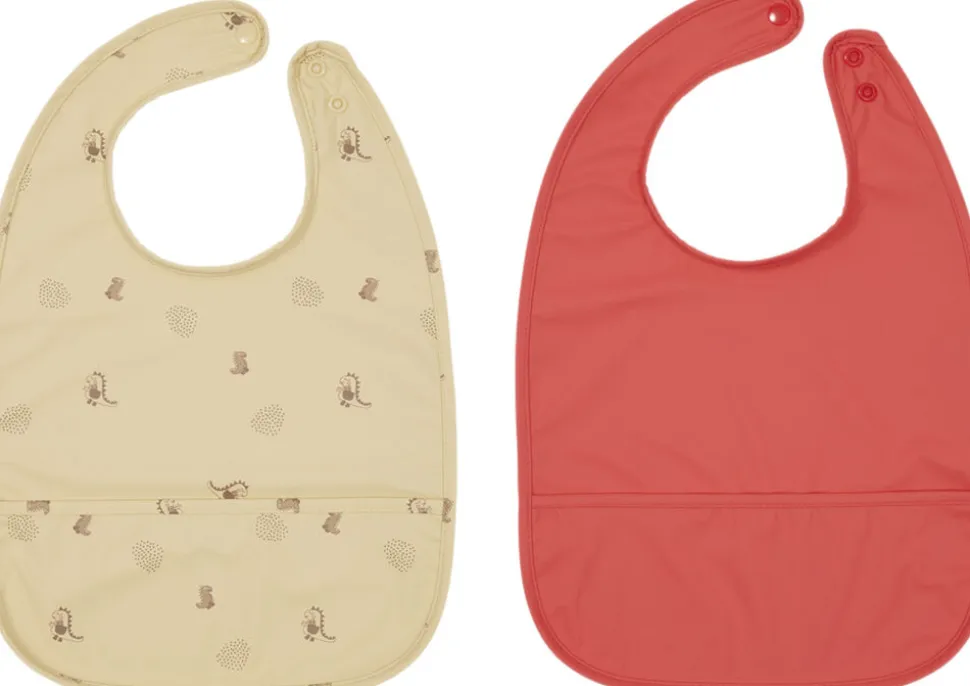 Med Dino sættet får du to praktiske hagesmække i et fint design med søde illustrationer af dinosaurer. De er lavet i genanvendt polyester og lukkes med en praktisk lukning i nakken.