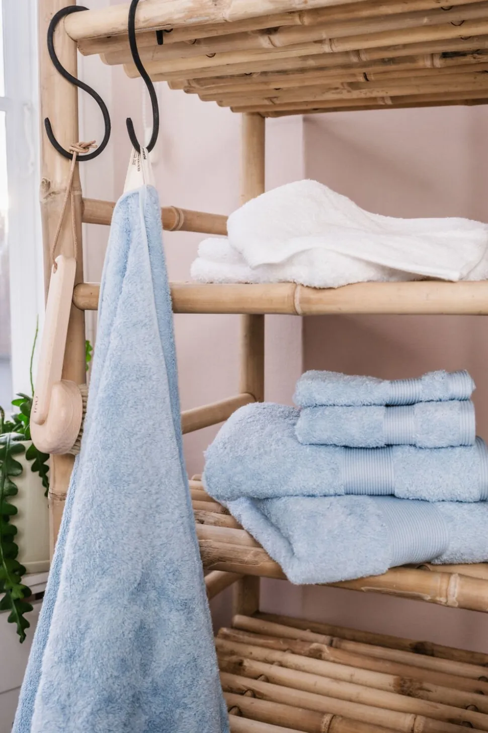 • Stilfuldt design: Håndklædet har et flot, stilsikkert look, der tilføjer et elegant touch til dit badeværelse. Den lyseblå farve er beroligende og passer til mange forskellige indretningsstile.