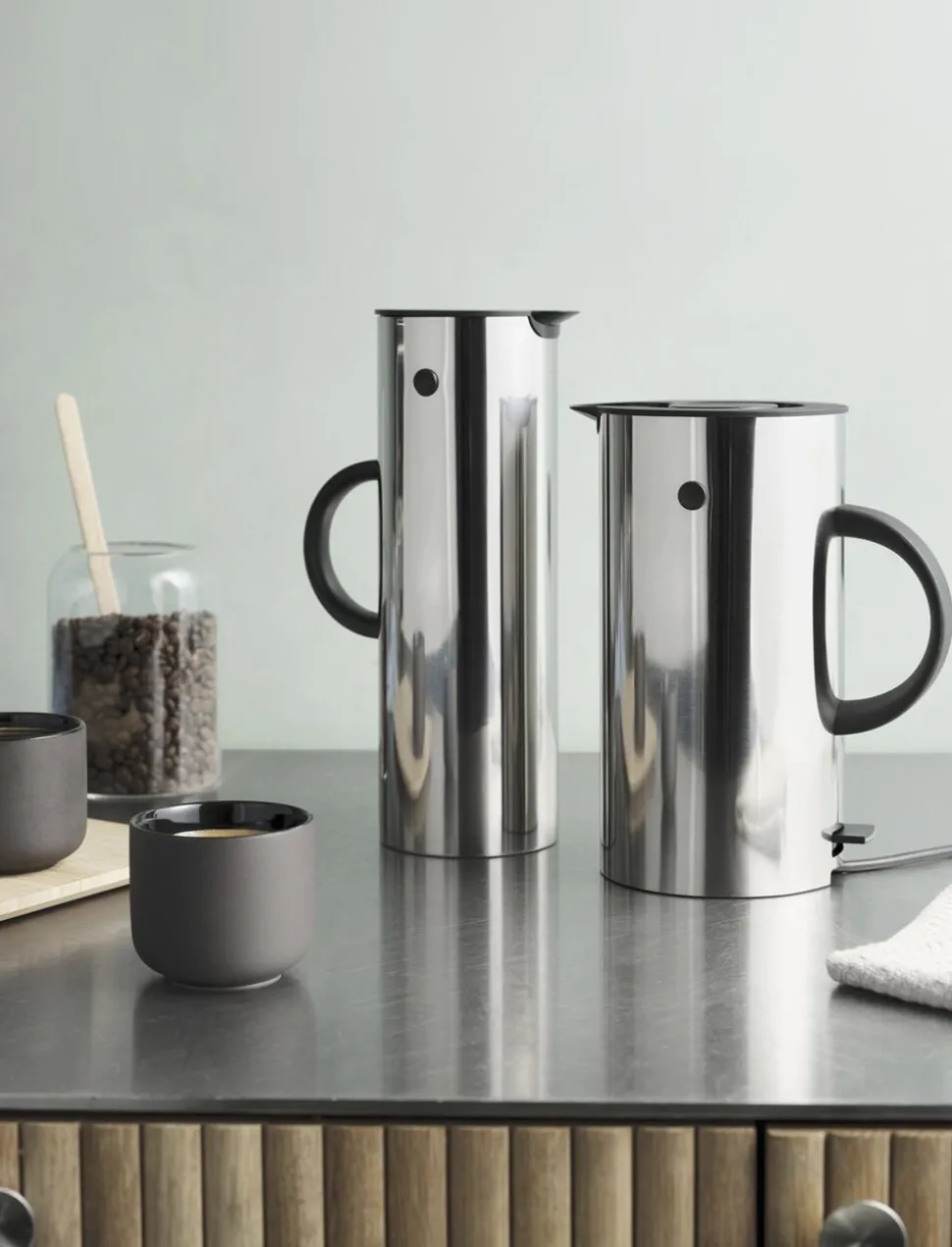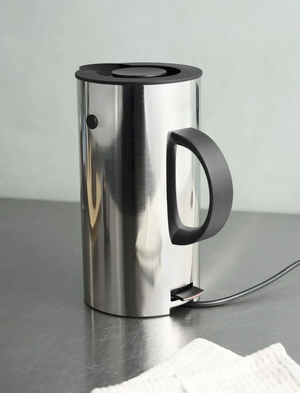 Erik Magnussens klassiske termokande EM77 har prydet kaffeborde verden rundt i over 40 år, og nu introduceres et helt nyt medlem af EM familien: EM77 elkedlen i stål. Den tilfører køkkenet et stilrent udtryk, og funktionelt komplementerer den både EM77 stempelkanden og EM77 termokanden. Elkedelen kan rumme op til 1,5 l. , og koger vandet hurtigt på et minimum af energi. EM77 Kedlen er udstyrret med et kalkfilter, og er ledningsfri, så den kan tages med på bordet.
