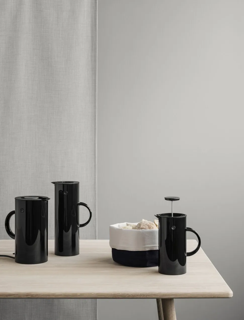 EM77 termokanden, designet af Erik Magnussen og produceret i Danmark siden 1977, er med sin unikke vippeprop et designikon, kendt og elsket over hele verden. Kanden på 1 l. kan anvendes til kaffe og te og den isolerende glasindsats sikrer, at drikken holder sig varm i mange timer – eller kold, hvis kanden bruges til fx iste. Udover vippeproppen medfølger også et picnic skruelåg, så kanden let kan transporteres med indhold.