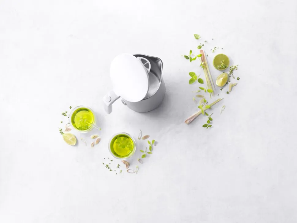 Elkedelen i rustfrit stål har en kapacitet på 1,5L og er udstyret med varmeisolering, et skjult varmelegeme og automatisk slukning. Kedlen er ledningsfri som sikrer 360° mobilitet.