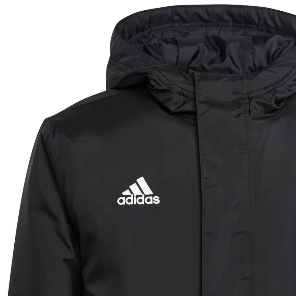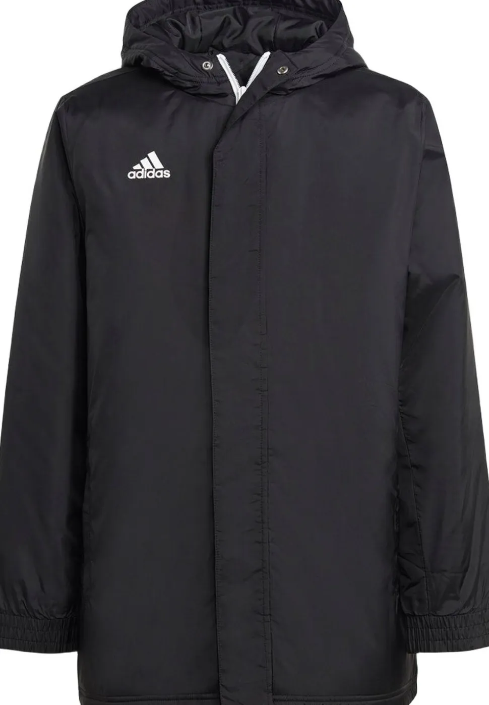 adidas Entrada 22 Stadium Jakke kombinerer funktionalitet og stil til sportsentusiaster og aktive livsstilsbrugere. Jakken er isoleret med genanvendt polyester, som sikrer varme på kolde dage, mens det vandafvisende ydre og stormklap med trykknapper beskytter mod vind og vejr. Den rummelige hætte og lynlåslommer holder dig tør og dine ejendele sikre under træning eller på sidelinjen. Med en regular fit, der sikrer komfort og bevægelsesfrihed, er denne jakke ideel til både træning og hverdagsbrug. En bæredygtig og sporty løsning fra Adidas, perfekt til dig, der ønsker kvalitet og ansvarlighed i ét produkt.