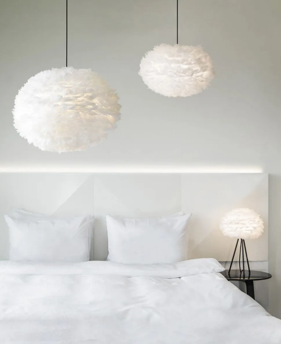 Umage Eos er lavet af naturlige gåsefjer der gør hver eneste Eos lampe unik. Umage Eos giver et blødt lys og er en elegant og fortryllende lampe, selv når den er slukket. Umage Eos findes i 4 størrelser, der hver især komplimenterer ethvert rum.