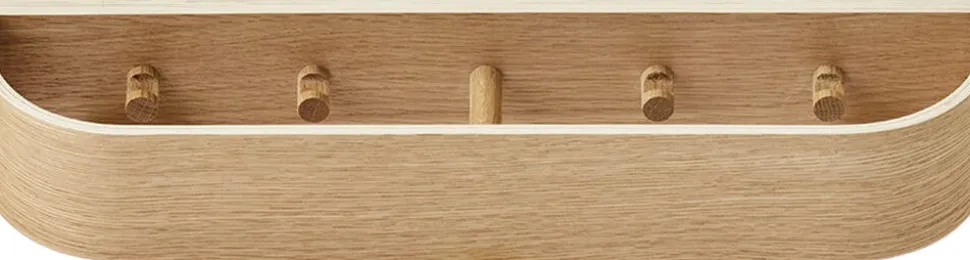 With its careful combination of gently rounded edges, warm wood and discreet functionality, the Epoch Clothes Rack offers streamlined storage for spaces large and small. Designed for Audo by Nina Bruun and crafted in natural or dark stained oak, the wall-mounted rack features hidden clothing hooks, and the space-saving design can be suspended alone or in rows of multiples. [dimensions-start] 50: H: 8 cm, W: 50 cm, D: 11 cm79: H: 8 cm, W: 79 cm, D: 11 cm [dimensions-end] [materials-start] Plywood and oak veneer [materials-end] [additional-resources-start] DOWNLOADS PRODUCT FACT SHEET 2D/3D FILES ASSEMBLY INSTRUCTIONS [additional-resources-end] [vimeo-video-embed-start] https://vimeo. com/603855390 [vimeo-video-embed-end]