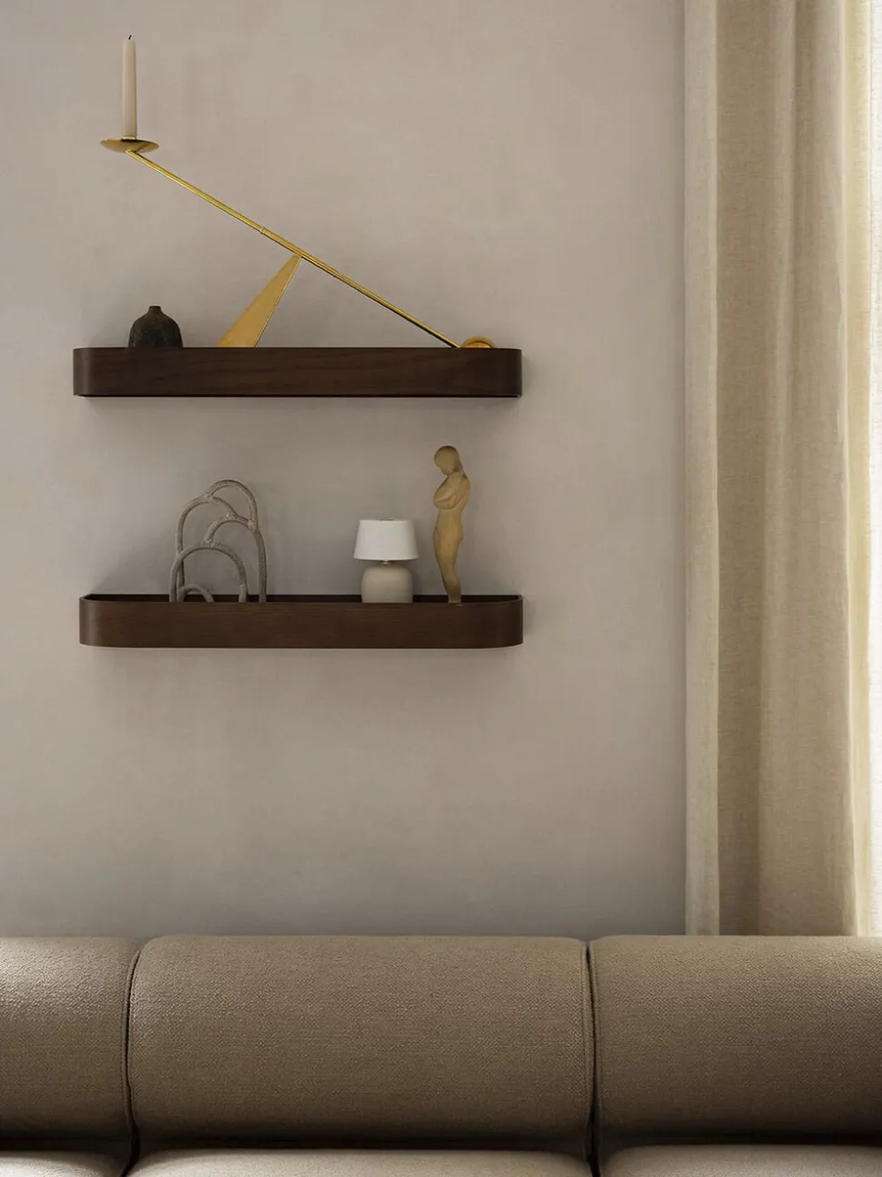 Designed for Audo by Nina Bruun, the Epoch Shelf is crafted in wood veneer and offered in two natural finishes: natural or dark stained oak. The multipurpose, space-saving design features on the one side a deep shelf for everyday clutter and on the other a shelf on which to place decorative objects. Multiples can be suspended in horizontal or vertical rows. [dimensions-start] 50: H: 8 cm, W: 50 cm, D: 13 cm79: H: 8 cm, W: 79 cm, D: 20,4 cm [dimensions-end] [materials-start] Plywood, oak venner and HPL [materials-end] [additional-resources-start] DOWNLOADS PRODUCT FACT SHEET 2D/3D FILES ASSEMBLY INSTRUCTIONS [additional-resources-end] [vimeo-video-embed-start] https://vimeo. com/603855447 [vimeo-video-embed-end]