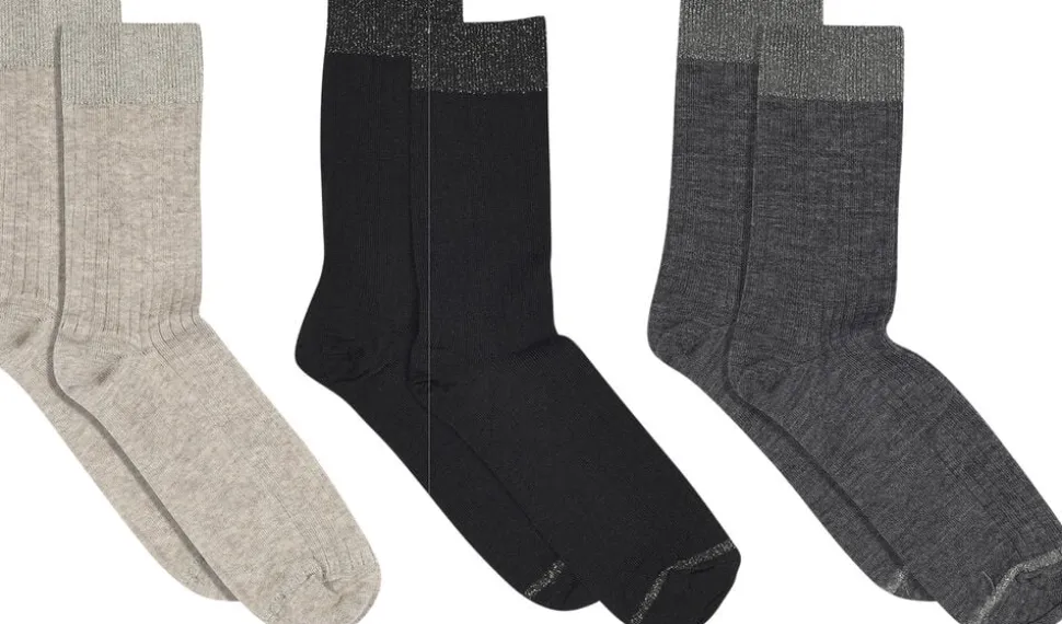 3-pak sammensat af bløde uldstrømper fra MPwoman, i merinould . Strømpen har en bred ribkant.