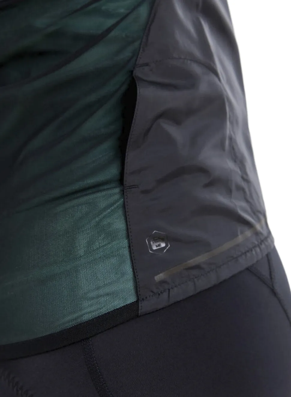 - Ultralet cykelvest med vind- og vandafvisende forside og elastisk samt åndbar mesh-bagside