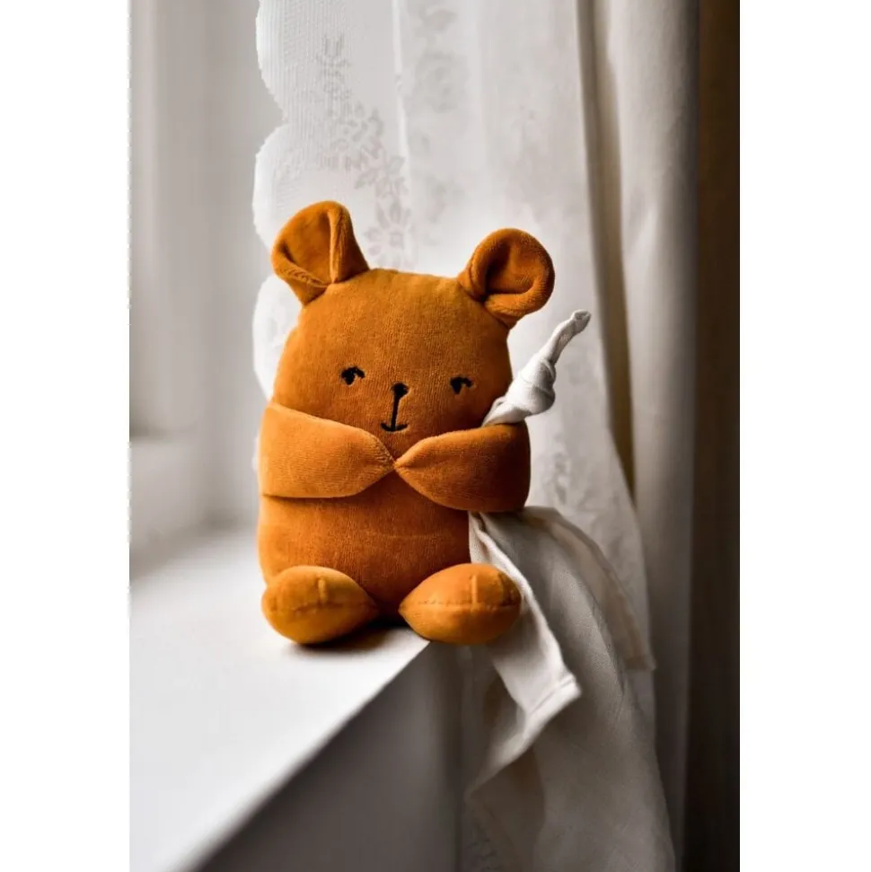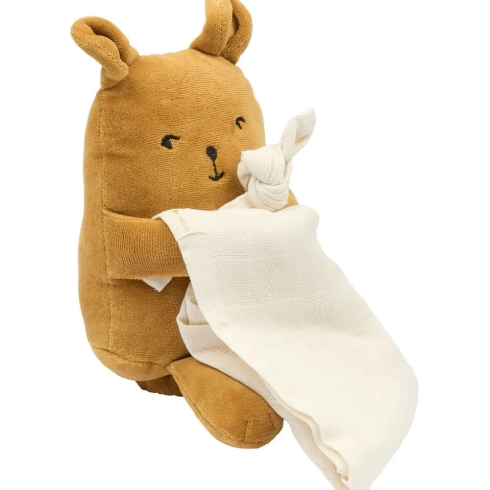 Sød og blød Fabbie Music Box – Bjørn til rolige stunder med en fin lille melodi, så dit lille barn kan få et fredeligt øjeblik. Bjørnen holder et musselinklud, som er lavet af 100% økologisk bomuld og perfekt til din baby at putte med. Aldersanbefaling: 0M+ EU-legetøjs sikkerhedsstandard – CE