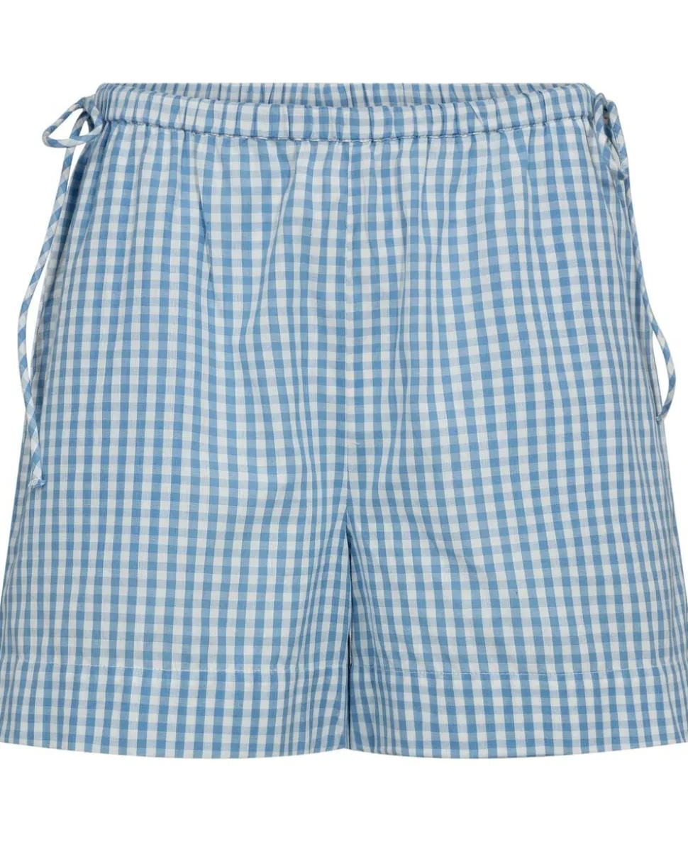 Shorts fra Magasin du Nord Collection i den blødeste kvalitet af 100% økologisk bomuld med GOTS-certificering. Shortsene er enkle i modellen med et ternet mønster, en løs pasform, sidelommer samt snøre i taljen, der bindes i siderne. En detalje, der giver en rigtig fin effekt.