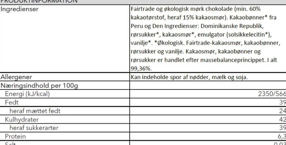 Blandt andet God med: citrusfrugter, røde frugter og bær, kaffe og salt.