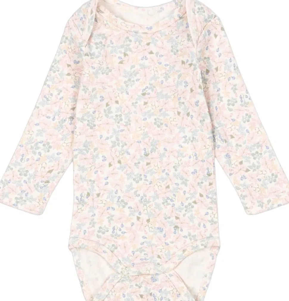 Blød bodysuit i økologisk bomuld med lange ærmer. Fremstillet i en fleksibel ribbe med en praktisk kuverthalsfunktion, der gør den nem at tage af og på, samt nemme trykknapper mellem benene til bleskift