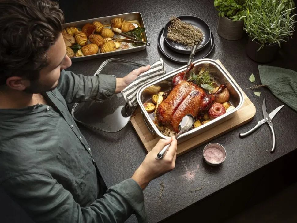Fjerkræsaks i rustfrit stål gør arbejdet med fjerkræ lettere og mere effektivt. Det skarpe skær med takker og den indbyggede benknuser gør det muligt at håndtere selv de mest krævende dele af fjerkræet. Fjerkræsaksen er udstyret med et ergonomisk håndtag, der ligger perfekt i hånden uanset om du er højre- eller venstrehåndet. Kan nemt låses med én hånd for sikker og pladsbesparende opbevaring. Håndopvask anbefales.