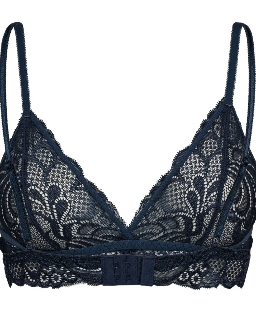 BH fra Magasin du Nord Collection i en smuk blondekvalitet. BH’en er enkel i modellen med trekantede skåle, smalle, justerbare skulderstropper, hægtelukning på ryggen samt en smal elastikkant under skålene. En skøn BH i den lækreste kvalitet. Se også de andre fine styles i Fleur-serien.