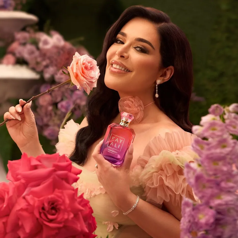 “Min inspiration til KAYALI har altid været at få folk til at føle sig rigtig godt tilpas, når de bærer vores dufte. Med Fleur Majesty Rose Royale | 31 ønskede jeg at skabe en varm blomsterduft, der både er stærk og blød – en duft, der føles ubesværet elegant, selvsikker og unik. For at bringe denne dufthistorie til live valgte jeg rosen som grundtone, da den ofte kaldes “blomsternes dronning” og præsenterer en romantisk og tidløs facet af duften. Vi tilføjede lækker grøn pære og sød fersken samt delikat lyserød pæon, violettræ og violet moskus for at skabe en sensuel og kraftfuld duft, der holder længe!” – Mona Kattan
