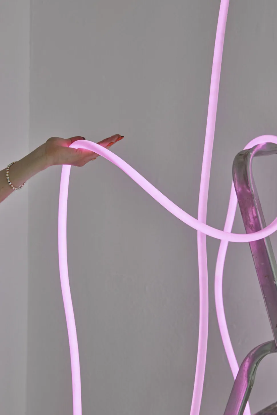 Denne LED-lampe er 5 meter lang i farven pink og er designet af arkitekt Mikkel Lang Mikkelsen.