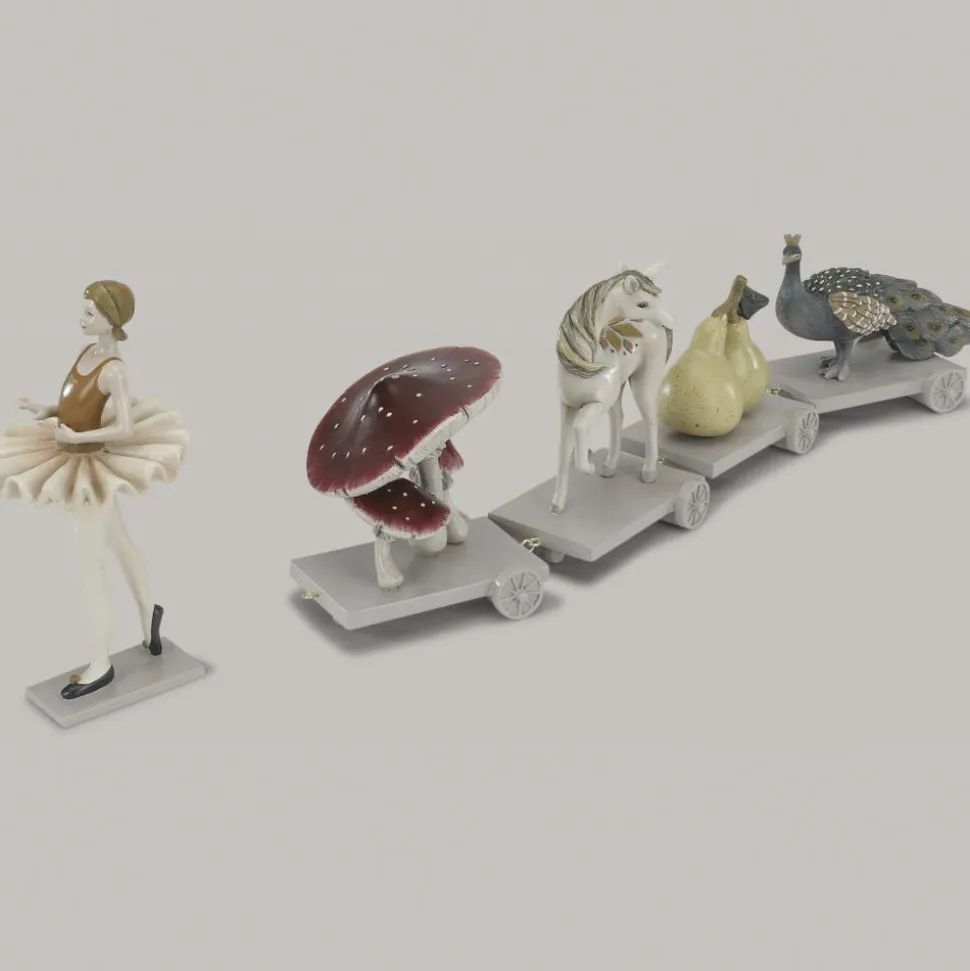 Dette unikt håndlavede fødselsdagstog vil pryde hvert fødselsdagsbord med stilfuld finesse og er velegnet til alle aldre. Vælg mellem: – Pierrot, der går med en citron, en gås, et cirkustelt, en løve og en abe – Ballerina, der går med svampe, enhjørning, pærer og en påfugl – Stærk mand, der går med en baseball, en blå rose, en kanin og en grammofon. Du finder også stearinlysholdere og tal i kassen. Fremstillet af 100 % polyresinmateriale. Rengøringsvejledning: Clean med en fugtig klud (maks. 30 grader C). Brug ikke kemikalier. ADVARSLER: Fjern al emballage før brug. Brænd inden for synsvidde, hold dig væk fra børn, kæledyr, brændbare materialer, og blæs 1 cm ud over toppen af lysholderen, og pas på varm voks, Voks efter at lyset er slukket. Fødselsdagstoget er IKKE et legetøj og er ONLY til dekoration. Sørg for ikke at efterlade fødselsdagstoget uden opsyn. Målinger: Længde – 69 cm