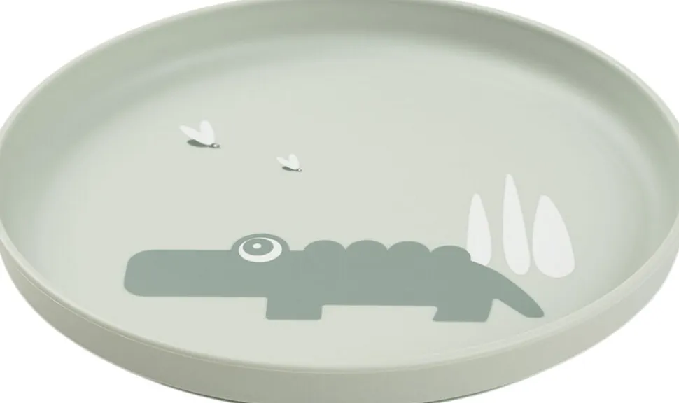 Servér dit barns mad på den søde og praktiske Foodie tallerken og lad det legende print bringe glæde til måltidet. Den høje kant hjælper barnet med at fange maden, mens den praktiske, skridsikre bund sørger for, at tallerkenen bliver, hvor den skal. Tallerkenen er designet til hverdagslivet med børn og tåler både opvaskemaskine og mikroovn. Efter utallige familiemiddage og børnefester kan tallerkenen affaldssorteres som plast og genanvendes til produktion af nye hverdagsprodukter. Den grønne tallerken er dekoreret med et legende motiv af den kærlige krokodille Croco, der beundrer et par ildfluer. Bundens mørkegrønne farve tilføjer en fin, tofarvet detalje.