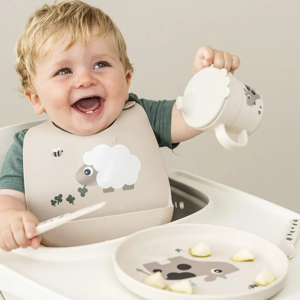 En praktisk antiskrid-base sikrer, at tallerkenen bliver på sin plads under måltidet