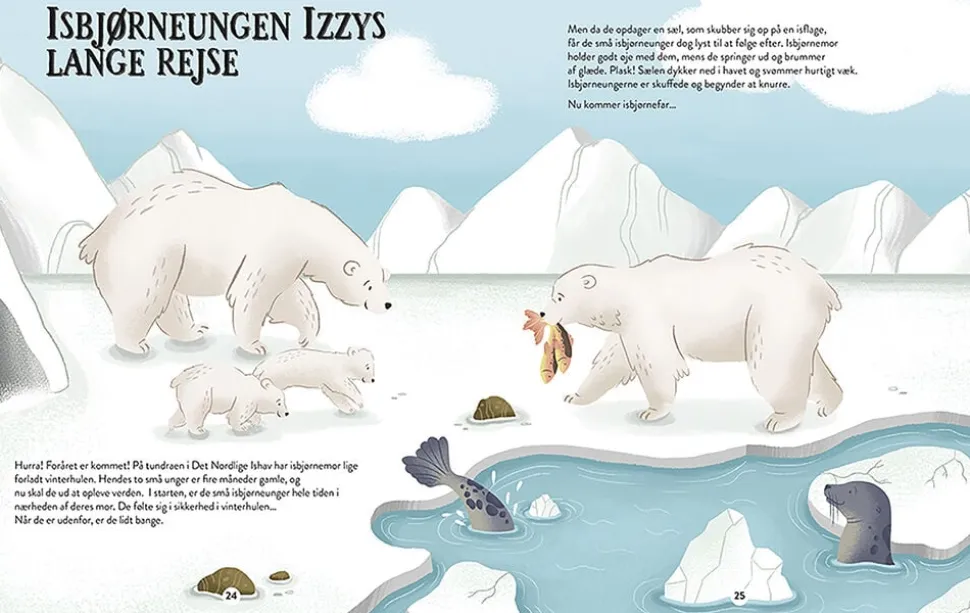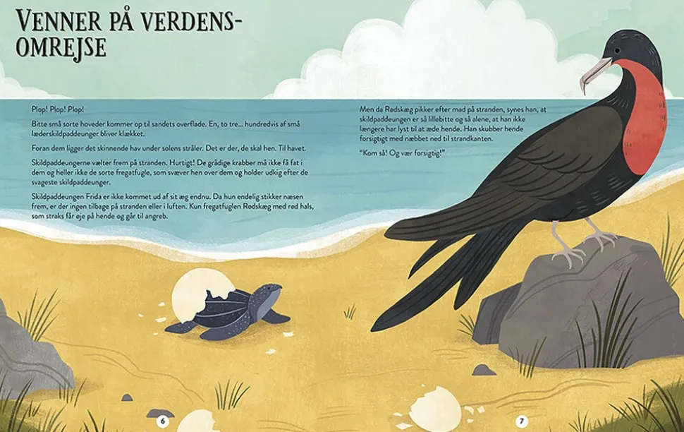 Sammen med skildpadden Frida, isbjørnen Izzy, orangutangen Ibo og rumfuglen Astro kommer læseren vidt omkring, både i verden og i ude rummet.