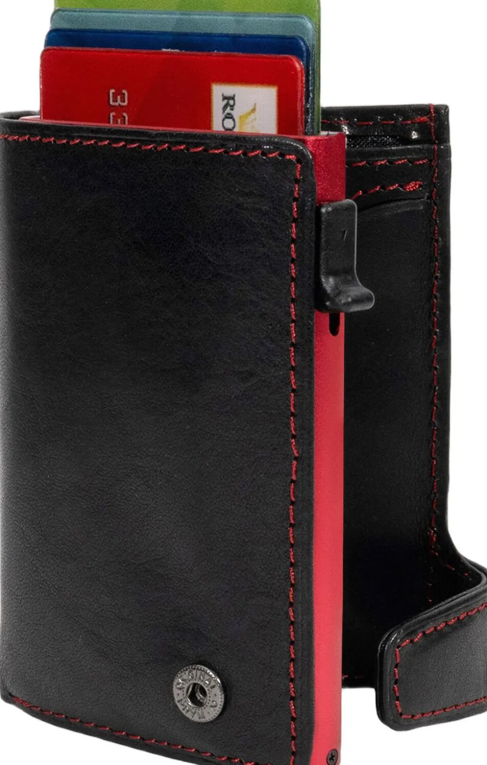 Smart og enkel kortholder fra Tony Perotti. Dens kompakte størrelse gør, at den nemt kan passe ind i enhver bukselomme eller håndtaske. Kortholderen er lavet af naturligt garvet italiensk okselæder og har en trykstøbt aluminiumskortholder med popup-system til 4-6 kort eller kreditkort. Derudover har pungen plads til sedler, kvitteringer, ekstra kreditkort samt et møntrum på ydersiden. Furbo-kortholderen beskytter dine kort med indbygget RFID-sikkerhed.