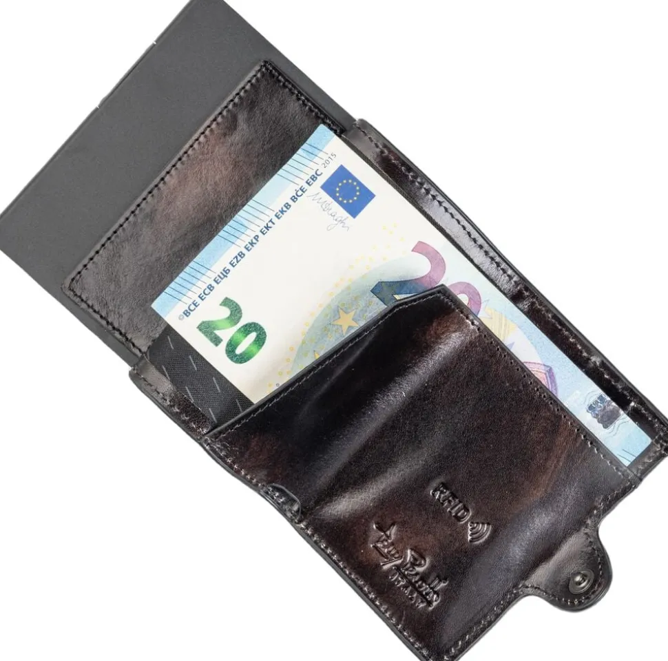 Praktisk Furbo kortholder i ægte italiensk koskind med plads til Apple AirTag. Udstyret med aluminiumskortholder med pop-up system til 4–6 kort samt indvendig plads til sedler, kvitteringer og ekstra kort. Udvendig lomme gør den ideel til rejsekort eller kontaktløs betaling. Beskytter mod skader, snavs og RFID-datatyveri. Læderet har rustikt Van Gogh-look og er LWG Gold-certificeret. *
