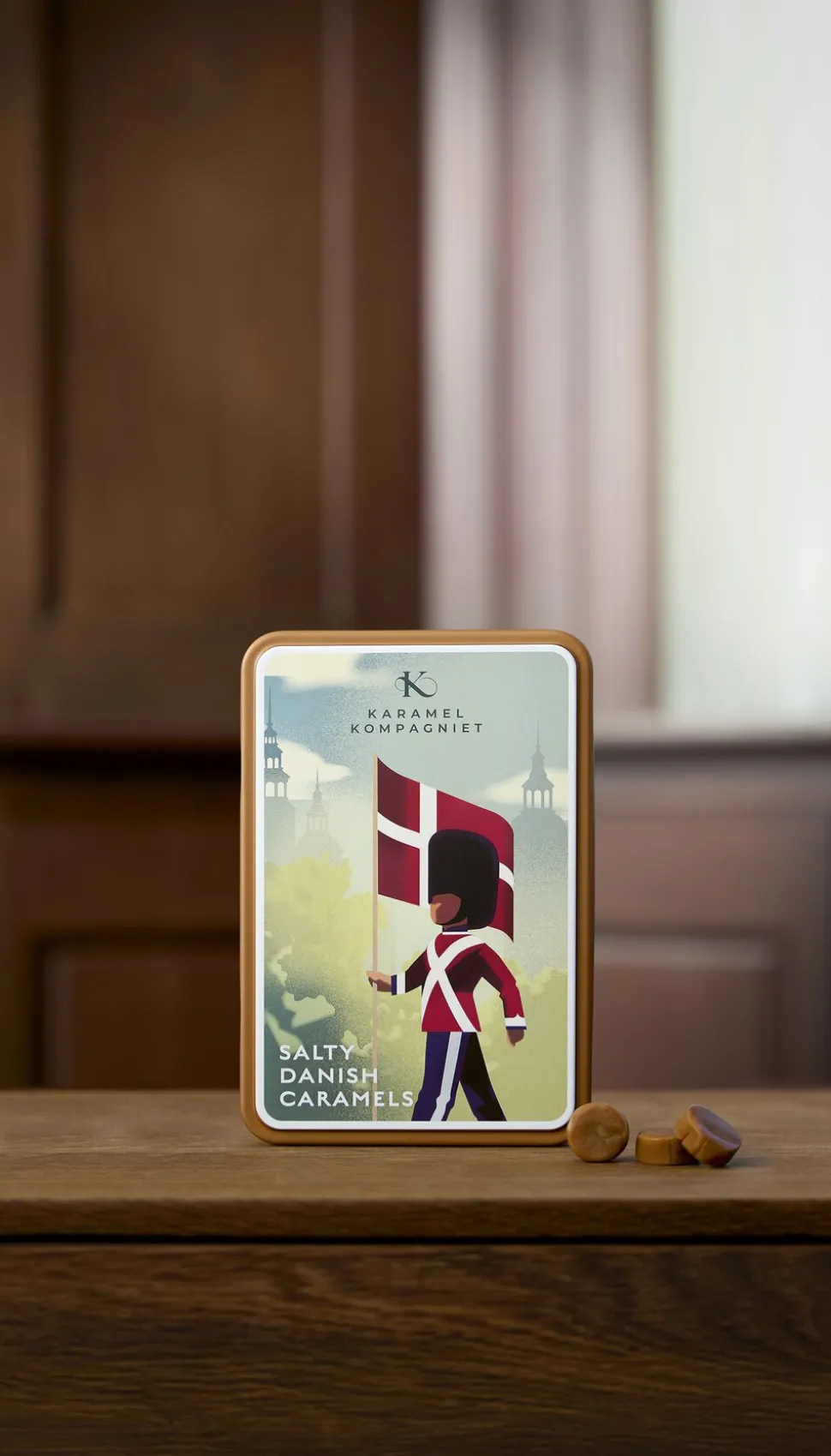 Garderen, som vi kalder denne dåse, kan bruges til utal af muligheder. Fødselsdage, studenterfester osv. Udvid gourmetoplevelsen med sprøde saltkrystaller fra Læsø Sydesalt, håndæltet ind i blød og fyldig flødekaramel i denne flotte gavedåse. Den dygtige og talentfulde kunster Mads Berg har tegnet det smukke motiv, Garderen, eksklusivt for Karamel Kompagniet.