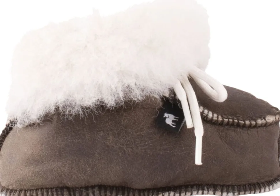Shepherd Gävle et par behagelige og varme babysutsko i fåreskind. Sutskoene er udformet i en ankelhøj model med en bred foldet kant i fåreskind. De har snørelukning, hvilket gør, at de sidder godt og er lette at tage af og på. Blød sål i ruskind.