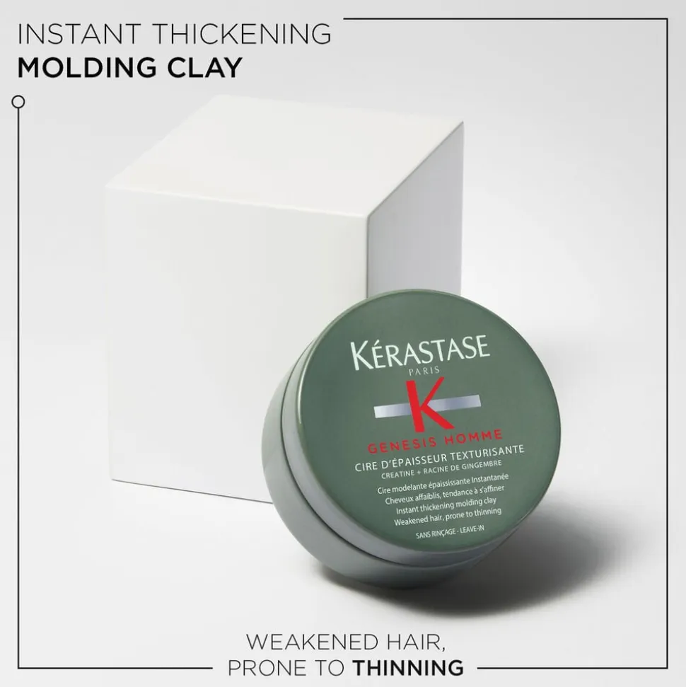 Øjeblikkeligt: STYRK OG GØR HÅRFIBRE TYKKERE med vores Bains, Cire d’Épaisseur og Spray De Force Épaississant beriget med ingefærrod, kreatin og polymerer