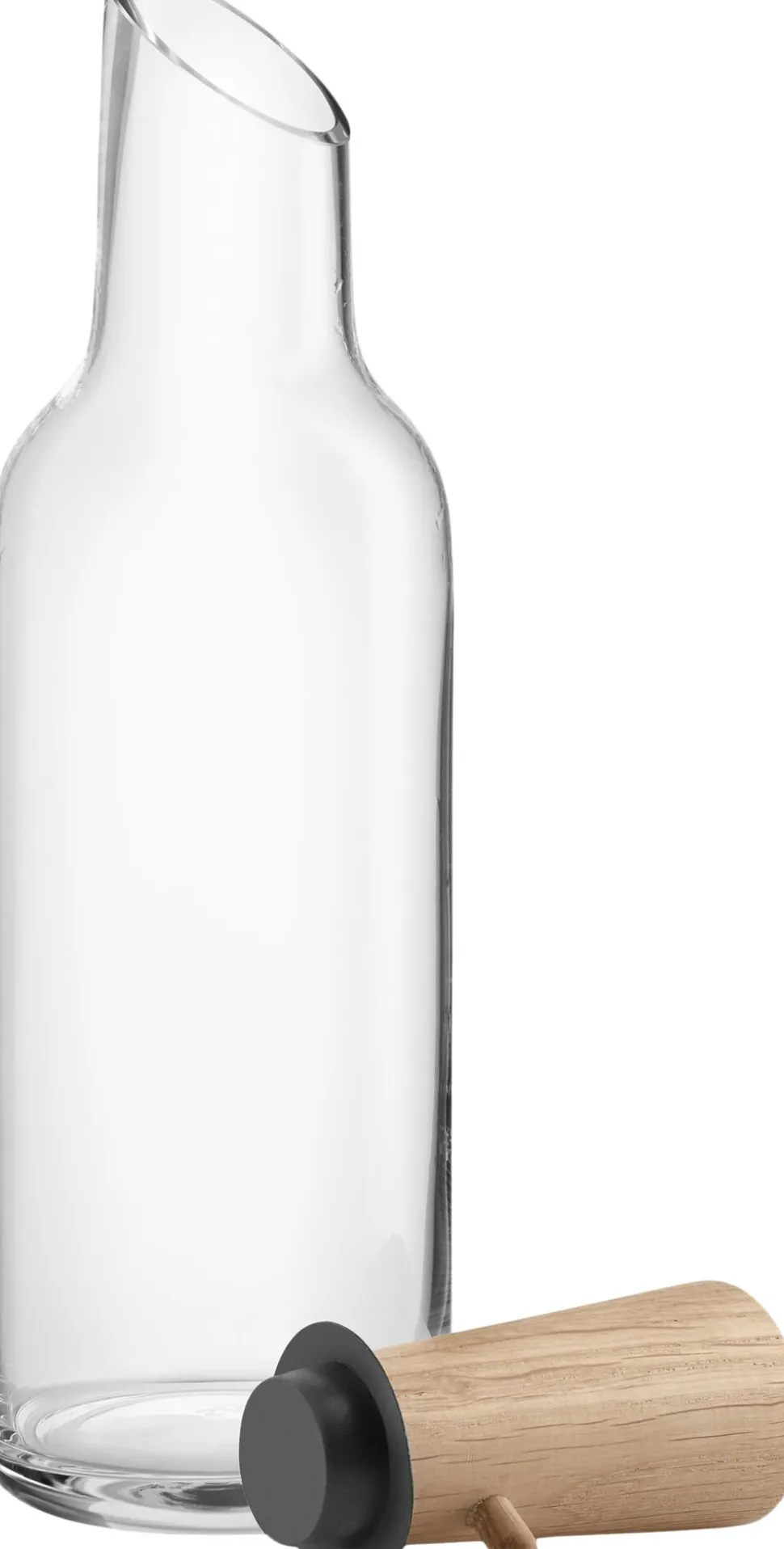 Tilfør spisebordet et nyt nordisk look med en elegant glaskaraffel, som med sit gennemtænkte design passer perfekt i køleskabsdøren. Den praktiske egetræsprop sikrer, at vandet ikke tager smag fra køleskabets indhold. Karaflen tåler maskinopvask og er derfor nem at rengøre. Proppen vaskes i hånden. Træ er et levende og organisk materiale, så der forekommer naturlige variationer. Vedligeholdes ved regelmæssig oliering.