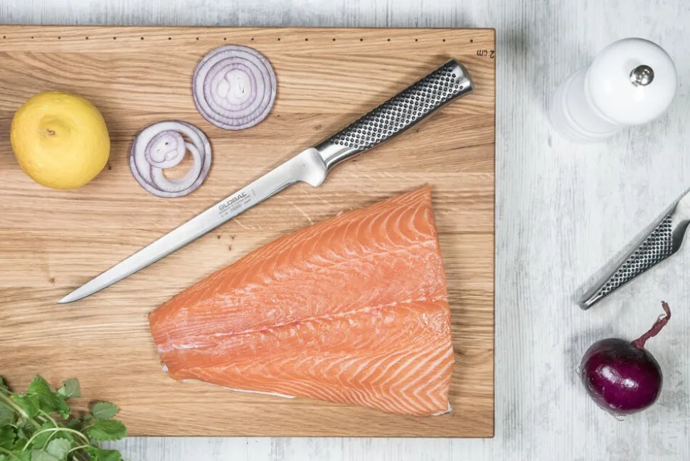 En kniv med et relativt smalt og fleksibelt blad, der er særligt velegnet til filetering af fisk. Kniven er meget smidig, hvilket gør det lettere at skære præcist under fiskenes hud og omkring benene. Denne egenskab giver dig mulighed for at udføre præcise snit og bevægelser. Udover filetering kan du også anvende denne kniv til at trimme kød og fjerkræ med nøjagtighed.