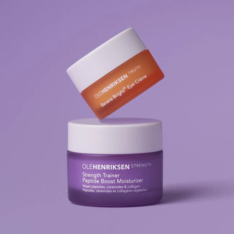 Denne lille fugtgivende duo genopbygger din huds fugt og reducerer udseendet af fine linjer og rynker. Hvad er der i sættet?Strength Trainer Peptide Boost Moisturizer fugter og styrker huden øjeblikkeligtBanana Bright+ Eye Crème lysner øjeblikkeligt under øjnene og reducerer synligt kragefødder