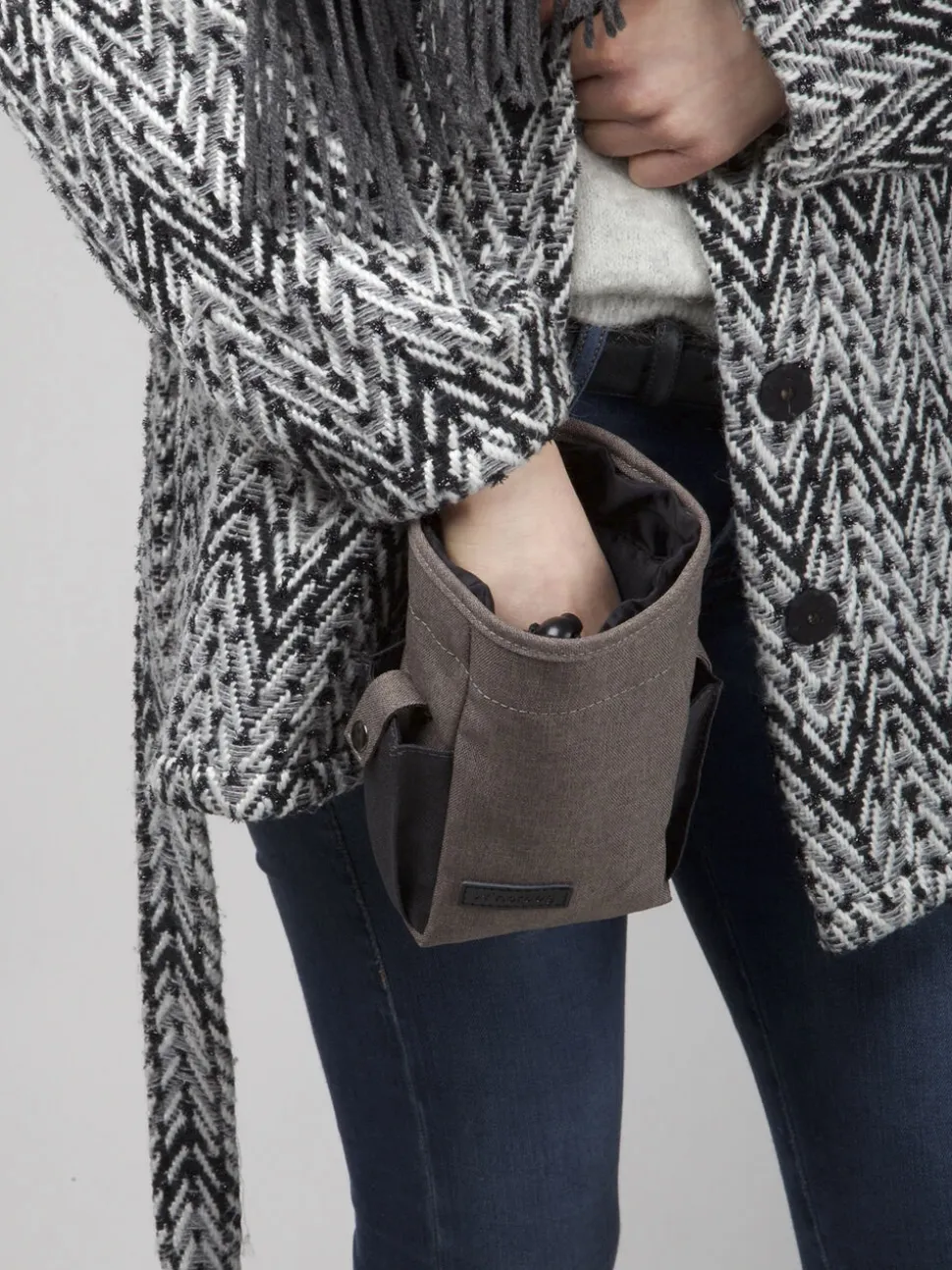 Godbidstasken Tenne er fremstillet af høj kvalitet i et unikt design samtidig med, at den har en masse gode funktioner. Den er nemlig både udstyret med en stor lomme, hvor der kan være en masse godbidder, en sidelomme til hundeposer og en lomme til tilbehør såsom nøgler.