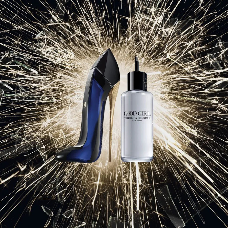 Flakonen til Good Girl Eau de Parfum er inspireret af modehusets ikoniske stiletter. Den dybe, mørkeblå farve skaber et elegant udtryk med et guldfarvet CH-monogram og en gylden metallisk hæl, der funkler i lyset. Siden lanceringen er Good Girl Eau de Parfum blevet en af verdens mest populære parfumer til kvinder og udgør den perfekte gave til én du holder af. Refill er kompatibel med 100 ML Good Girl Eau de Parfum og kræver separat køb.