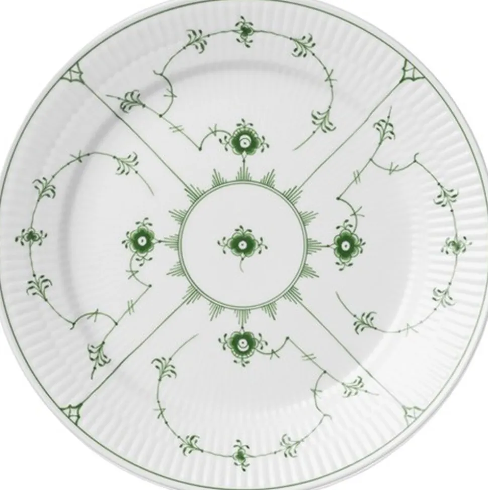 Tallerkenen på 25 cm er et elegant og kompakt valg, der fungerer perfekt til både frokost og middag. De rene linjer i det tidløse mønster er håndmalet i en rolig grøn tone, der tilfører et frisk, moderne udtryk og skaber en smuk forbindelse mellem Royal Copenhagens arv og nutid.