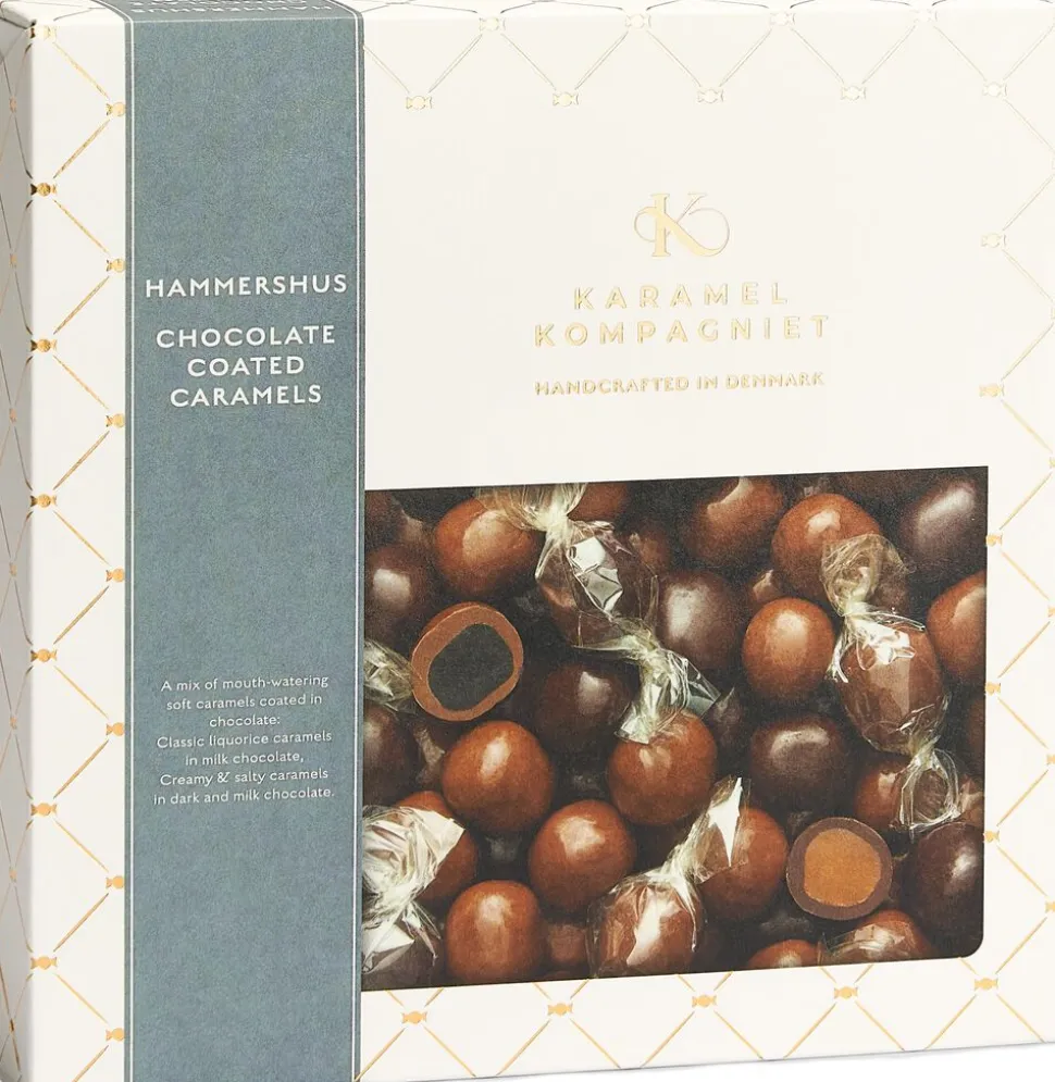 Mundrette bidder af runde bløde karameller i chokolade. Blanding med Fløde i Chokolade, Lakrids i Chokolade og Fløde & Sydesalt i Chokolade.