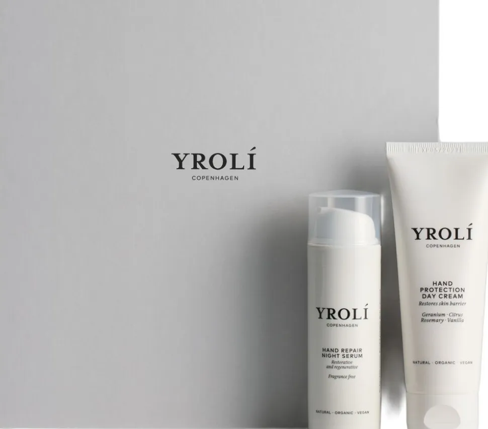 Yrolí Hand Care Kit er en komplet håndpleje, der understøtter hudens naturlige fornyelse og giver intensiv pleje og beskyttelse. Hand Repair Night Serum og Hand Protection Day Cream samarbejder om at styrke hudens barriere, forbedre elasticiteten og efterlade hænderne bløde og velplejede. Formlen med hyaluronsyre, aloe vera og glycerin tilfører intens fugt og næring i dybden. Hand Protection Day Cream beskytter hænderne mod udtørring og miljøpåvirkninger i løbet af dagen, samtidig med at den tilfører intensiv fugt og pleje. Om natten arbejder Hand Repair Night Serum på at regenerere og genopbygge huden. Ved regelmæssig brug bliver huden på hænderne sundere og mere modstandsdygtig. Påfør Hand Protection Day Cream om morgenen og massér den blidt ind i hænderne, indtil den er absorberet. Brug den dagligt for langvarig beskyttelse og pleje. Om aftenen påføres Hand Repair Night Serum på rene hænder, hvorefter det masseres ind og virker natten over. Certificeringer: Hand Repair Night Serum: Ecocert Cosmos Organic, Vegan og AllergyCertified. 100% naturlige ingredienser, hvoraf 50% er økologiske. Hand Protection Day Cream er Ecocert Cosmos Organic. 99,85% naturlige ingredienser og 54,9% økologiske.