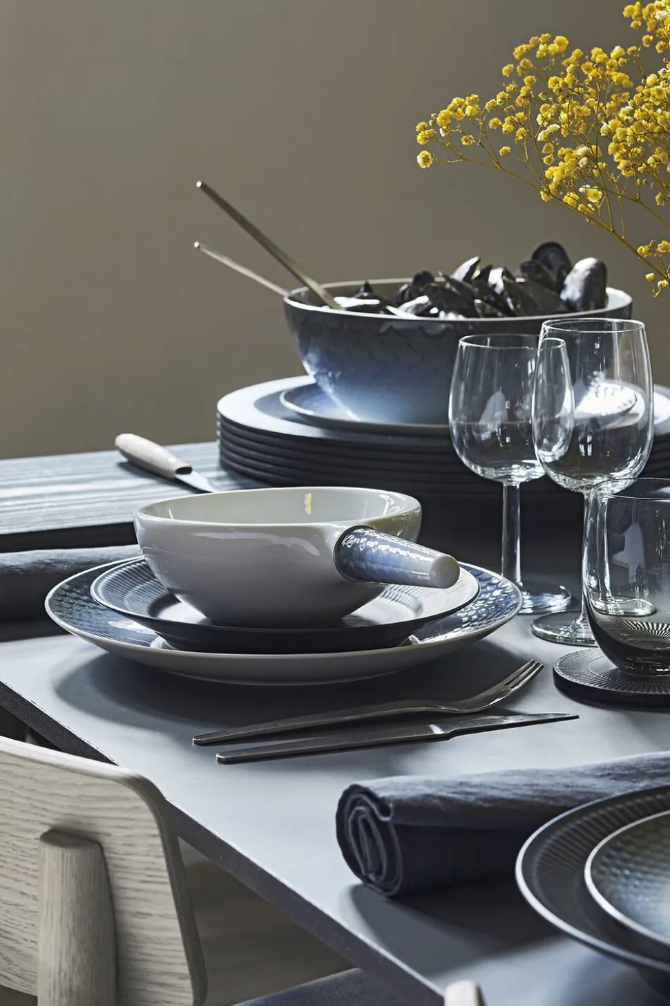 HAV er et mindre men betydningsfuldt porcelænsstel der præsenterer nye funktionaliteter og former. HAV er smukt sprøjtemalet i hånden og udsmykket med detaljer i bronze. Stellet er nænsomt skræddersyet til at være multifunktionelt – et stel, der er tidløst i både design og funktionalitet.
