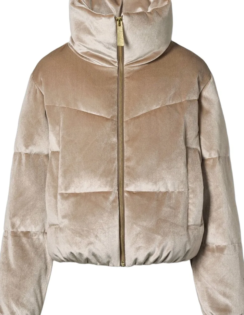 Jakke til børn i blød, imiteret pels fremstillet af genanvendt polyester.