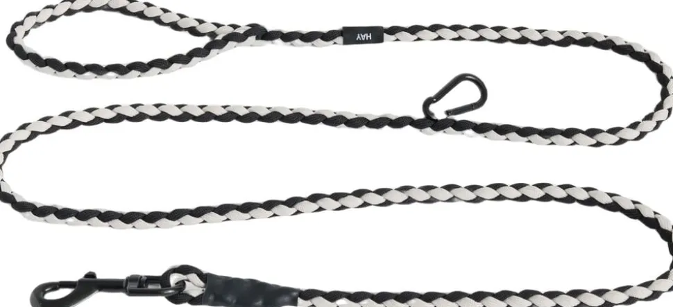 Justerbare HAY Dogs Leash-Braided M/L-Sort, hvid