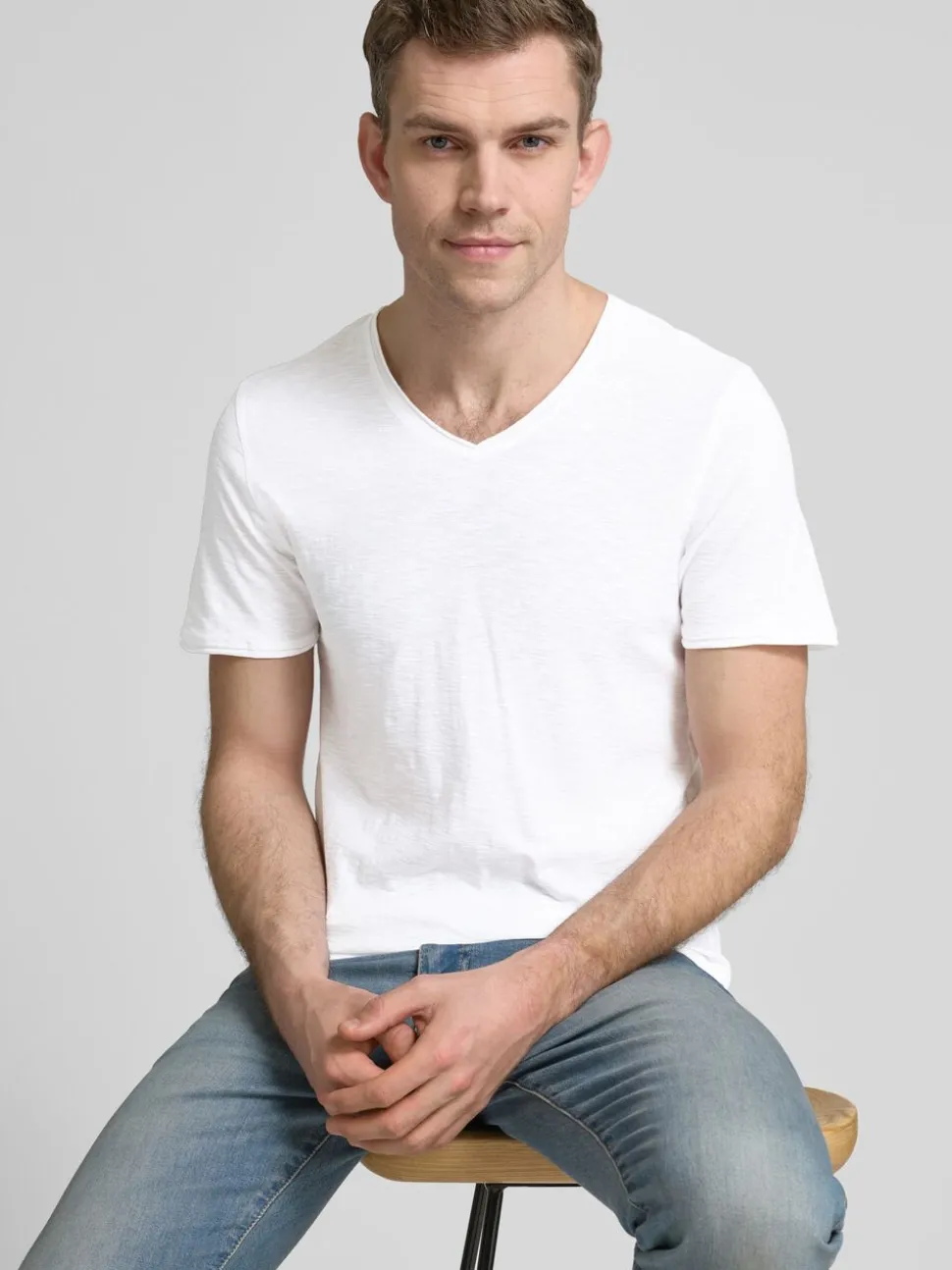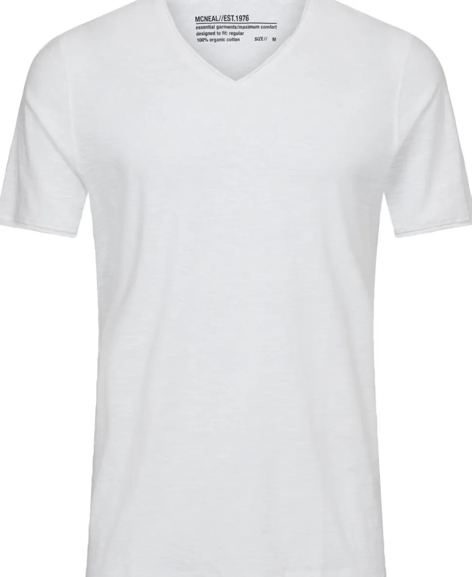 T-shirt fra McNeal i en blød kvalitet af 100% økologisk bomuld. T-shirten er enkel i modellen med korte ærmer, V-udskæring, rullekanter samt ‘Regular Fit’. En casual T-shirt i den lækreste kvalitet.