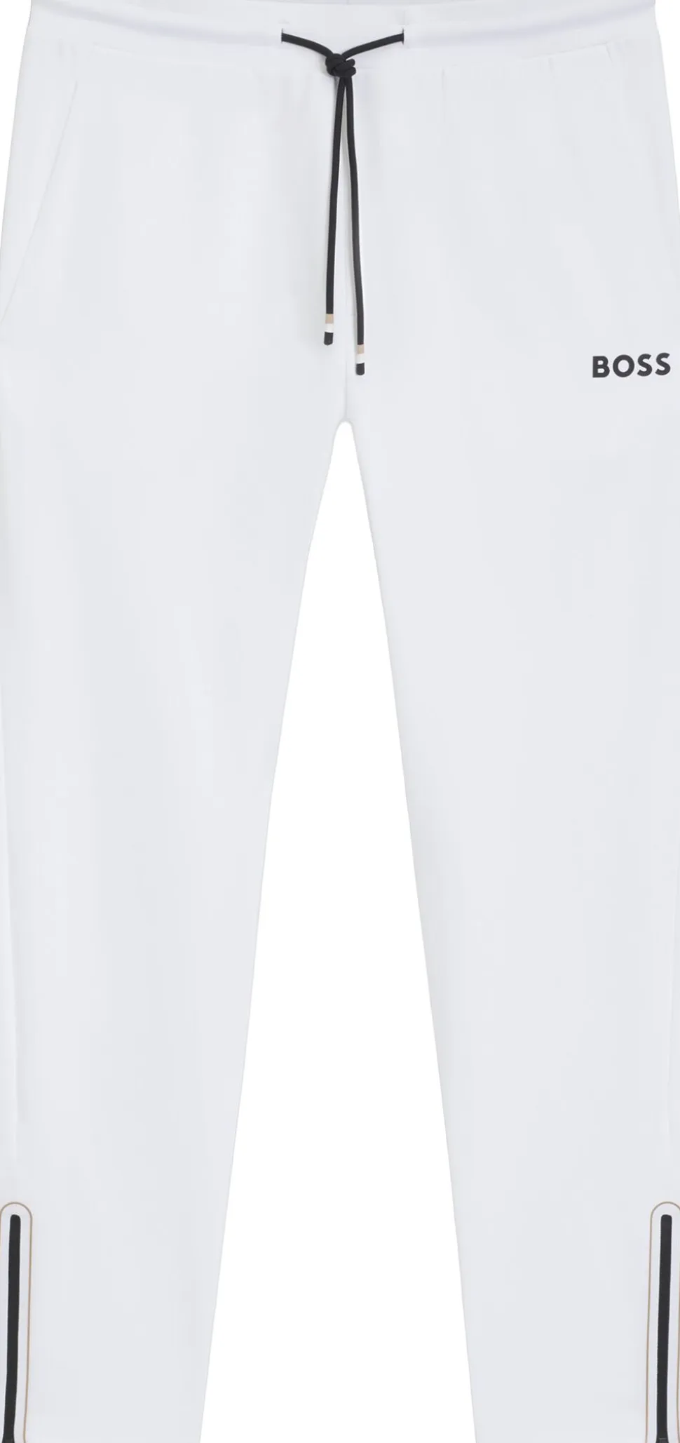 For hurtigtørrende komfort under alle forhold skal du vælge disse joggingbukser i lige pasform fra BOSS herretøj. Holdbar strækgabardin med fugthåndtering og rynkebestandighed.