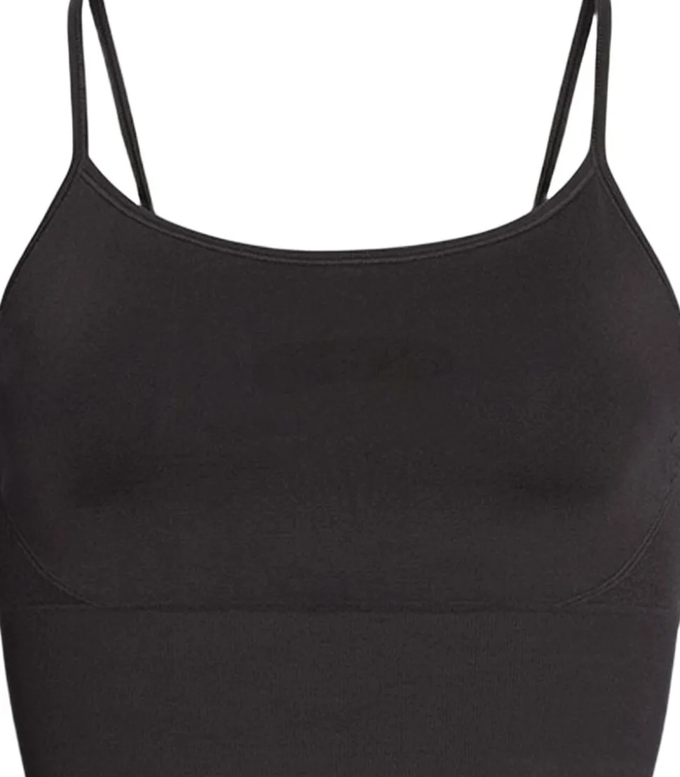 Detaljer: Den sømløse top er lavet af en blød og meget elastisk blanding af Recycled polyamid, normal polyamid og elastan. Stilen er udstyret med en bred linning for en blød pasform og krydsede stropper bagpå, hvilket giver høj komfort og fleksibilitet. Den er perfekt til at bevæge sig rundt i og dyrke enhver form for blød sport som yoga og pilates, eller bare til daglig brug. Et vigtigt element i enhver garderobe.