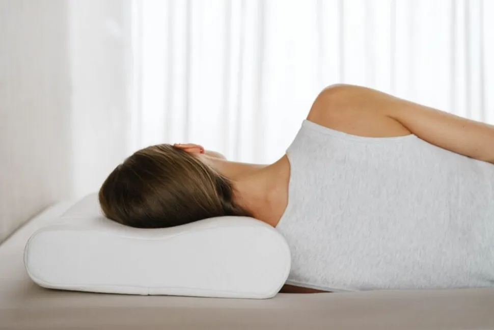 Høie Contour ergonomisk pude. En god nats søvn afhænger i stor grad af at du ligger godt og finder en optimal sovestilling. Høie Contour skumpude er lavet specielt for at tilpasse sig til din individuelle hoved- og nakkeprofil. Det temperaturfølsomme specielskum formes efter din krop af kropstemperaturen. Dette bidrager til ergonomisk rigtig støtte og trykbelastning. Contour skumpude har en buet form, som følger de ergonomiske konturer for hoved og nakke. Den ergonomiske udformning af puden giver dig muligheden for at vælge, om du vil have nakken på den lave eller høje del af puden, afhængig af hvordan du foretrækker at ligge, når du sover. Høie Contour egner sig godt til dig, som bruger en medium høj pude med god støtte, og kan lide at sove på ryggen eller på siden. Med et blødt og formsyet betræk regulerer puden temperatur og fugtighed godt, og giver dig en god søvnoplevelse. Puden finder tilbage til sin naturlige form mellem hver gang, du bruger den. Pudebetræk i 50×70 cm passer til puden pga. højden på puden.