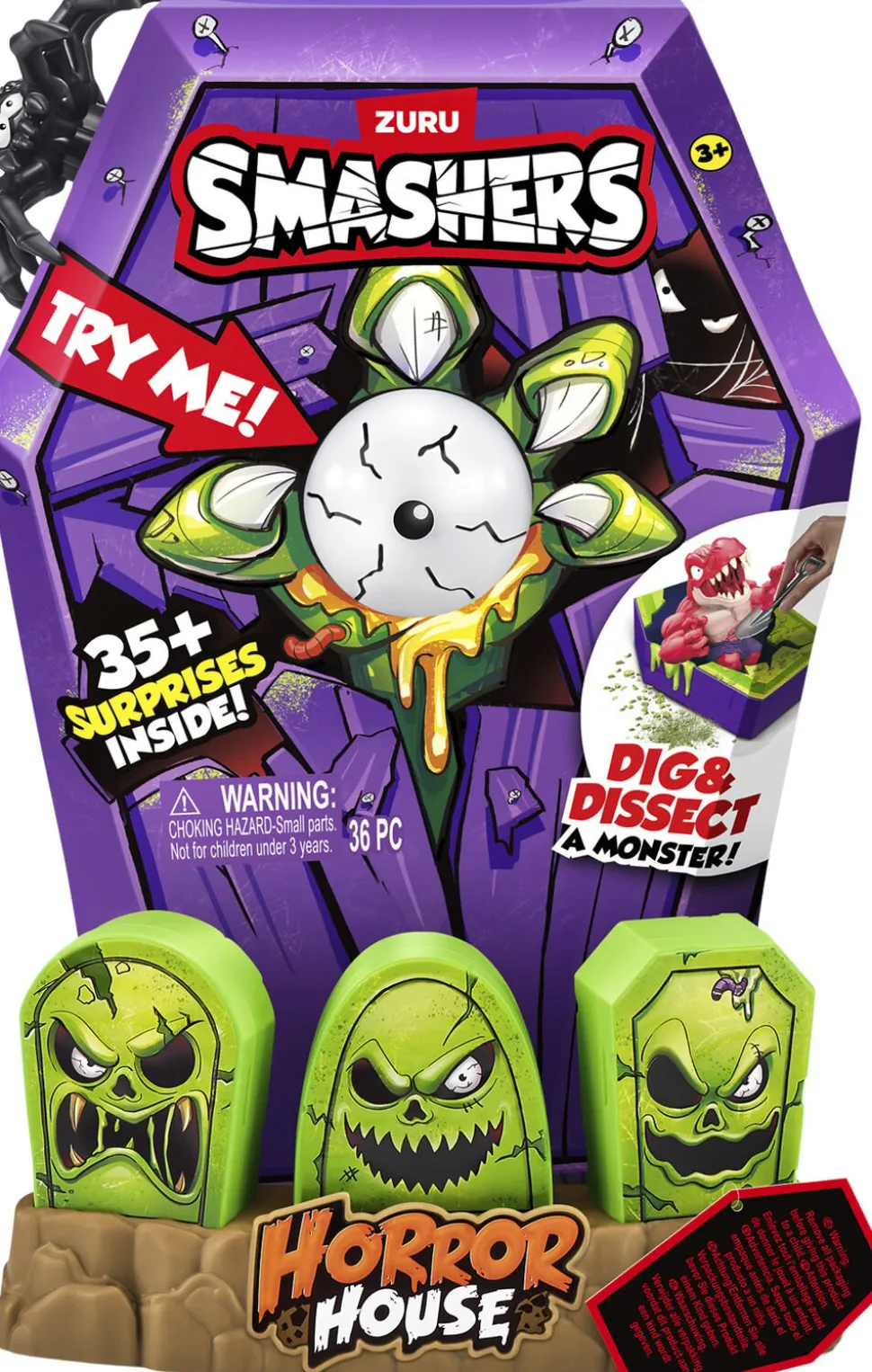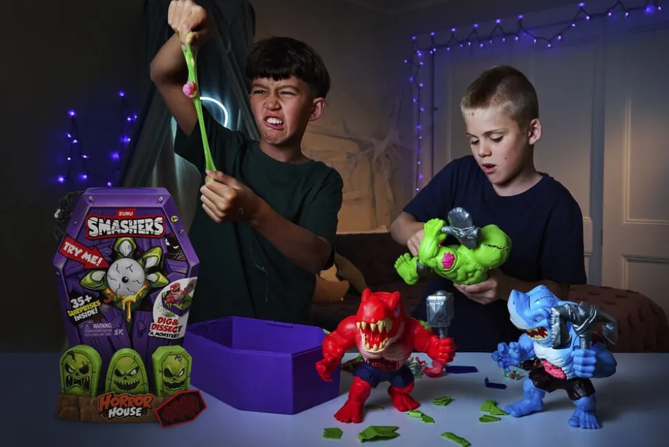 Smashers Horror House tager dig med på en uhyggelig rejse Smadr, grav og dissekér for at bringe dit monster til live og afdække 15 overraskelser Byg og kæmp mod dine monstre, mens du samler dem alle
