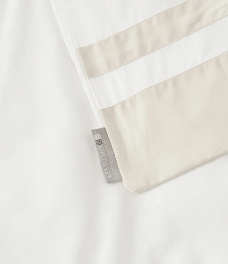 Som at tjekke ind på et luksushotel… men noget, du kan nyde hver dag! Nyd den klassiske elegance i vores hotel satinpudebetræk med kontrastfarve og forvandl dit soveværelse til en afslappende retreat. Med smart styling med brede lyse sandfarvede striber i kontrastfarve på en hvid baggrund sikrer dens konvolutlukning et perfekt stilfuldt look. Nyd de sødeste drømme på vores suverænt bløde 100% bomuldssatin. Det er holdbart og fnugbestandigt for langvarig nydelse, og Oeko-Tex sikrer frihed fra skadelige kemikalier til en skøn og rolig søvn.