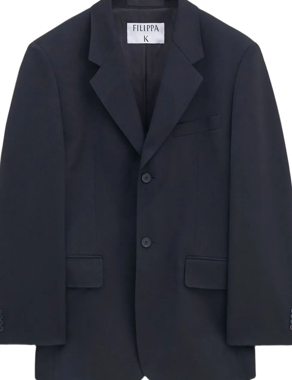 Single ammende blazer. Skræddersyet konstruktion. Monteret på wai st. To knapper foran. Brystlomme. Jettede klaplommer. Knapper ved ærmemanchetter. Vent midt bagpå. Indvendig lomme. Fuldt foret.