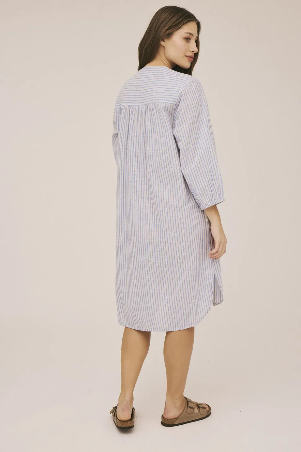 Tunika fra Magasin du Nord Collection i den blødeste kvalitet af 100% økologisk bomuld med GOTS-certificering. Kjolen har det fineste, stribede mønster, trekvartlange ballonærmer, knaplukning på brystet samt en løs pasform. En skøn tunika i den lækreste kvalitet.